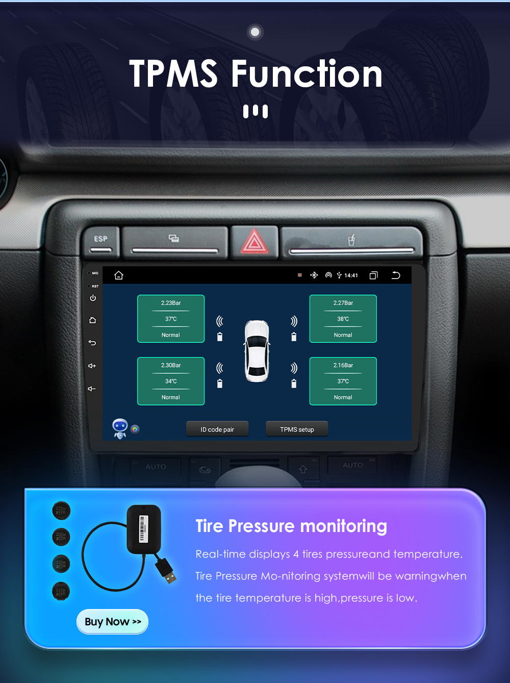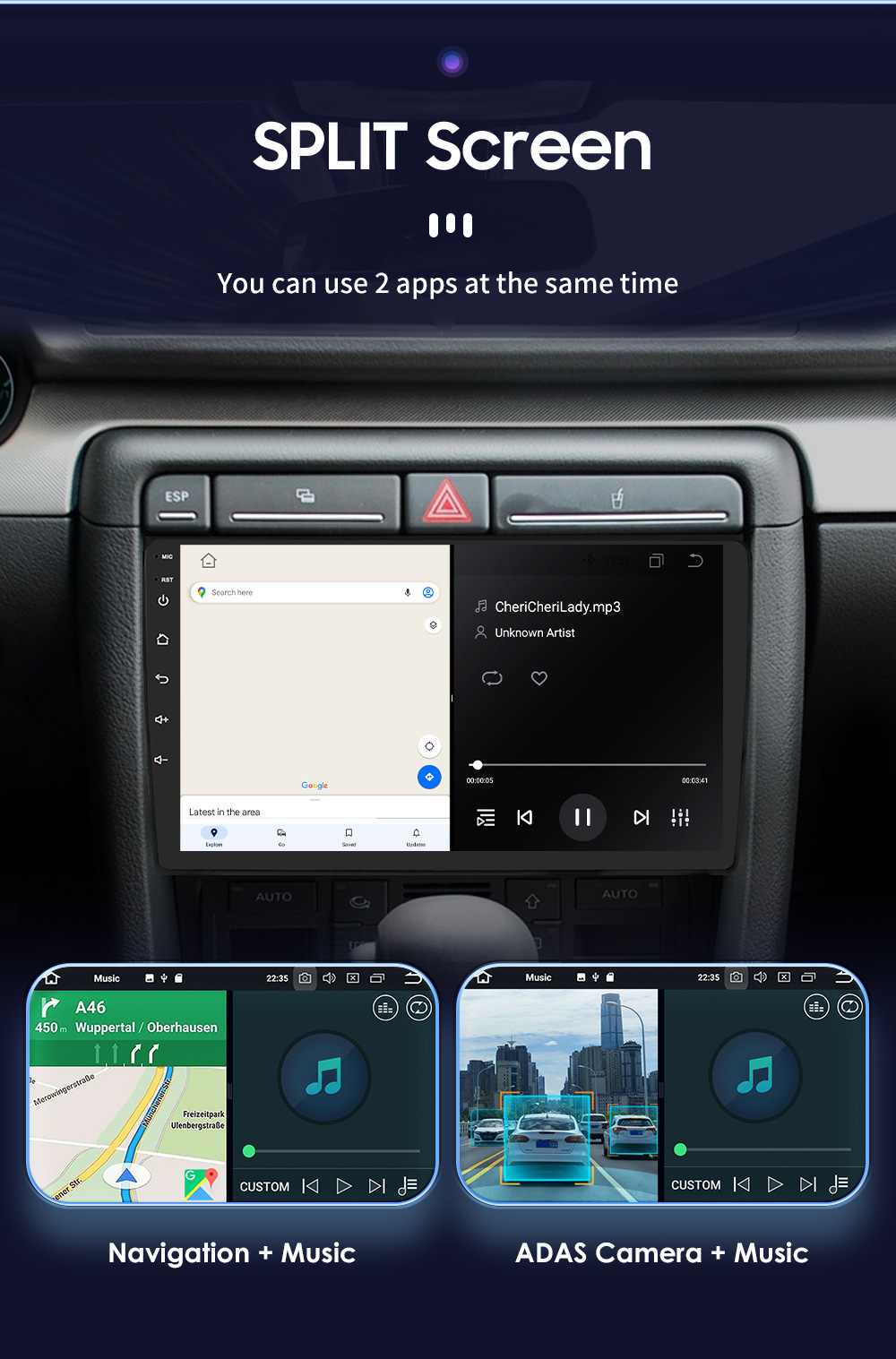 Carputech 2000-2009 Audi A4 Android 12 Autoradio sans fil Apple CarPlay et Android Auto avec 8 Go de RAM 128 Go de ROM et écran tactile QLED 9 pouces