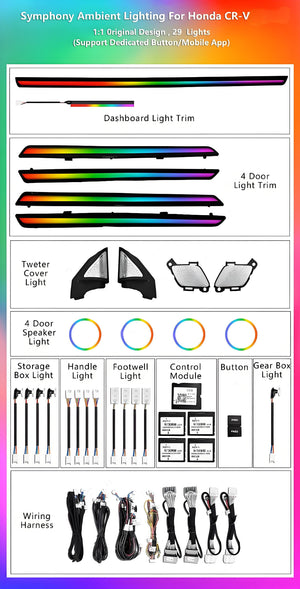 64 Kleuren Dynamische Sfeerverlichting voor Honda CR-V 6e Gen 2023-2025 Interieurverlichting Upgrade Accessoires