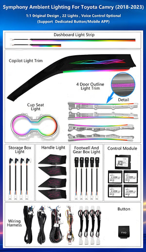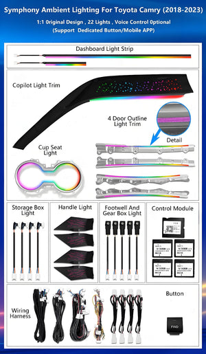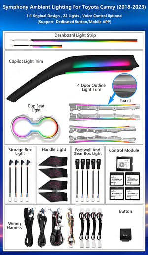 64 Kleuren Ambient Lighting Upgrade Kit voor Toyota Camry 8e 2018 - 2023 Interieur LED Licht Accessoires