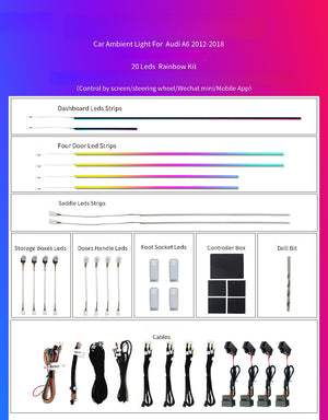 (Omdat de sierlijst van het achterportier alleen past op de Chinese Long Axis Version A6L, worden er slechts 2 stuks sierlijsten voor de voordeuren en 2 LED-strips voor de achterdeuren meegeleverd)