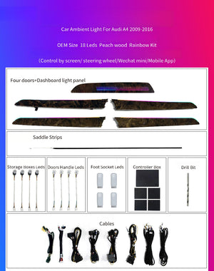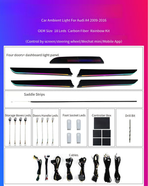 64 Colors Dynamic Ambient Light for Audi A4 B8 2009 - 2016 Interior LED Lighting Accessories Upgrade Atmosphere Light