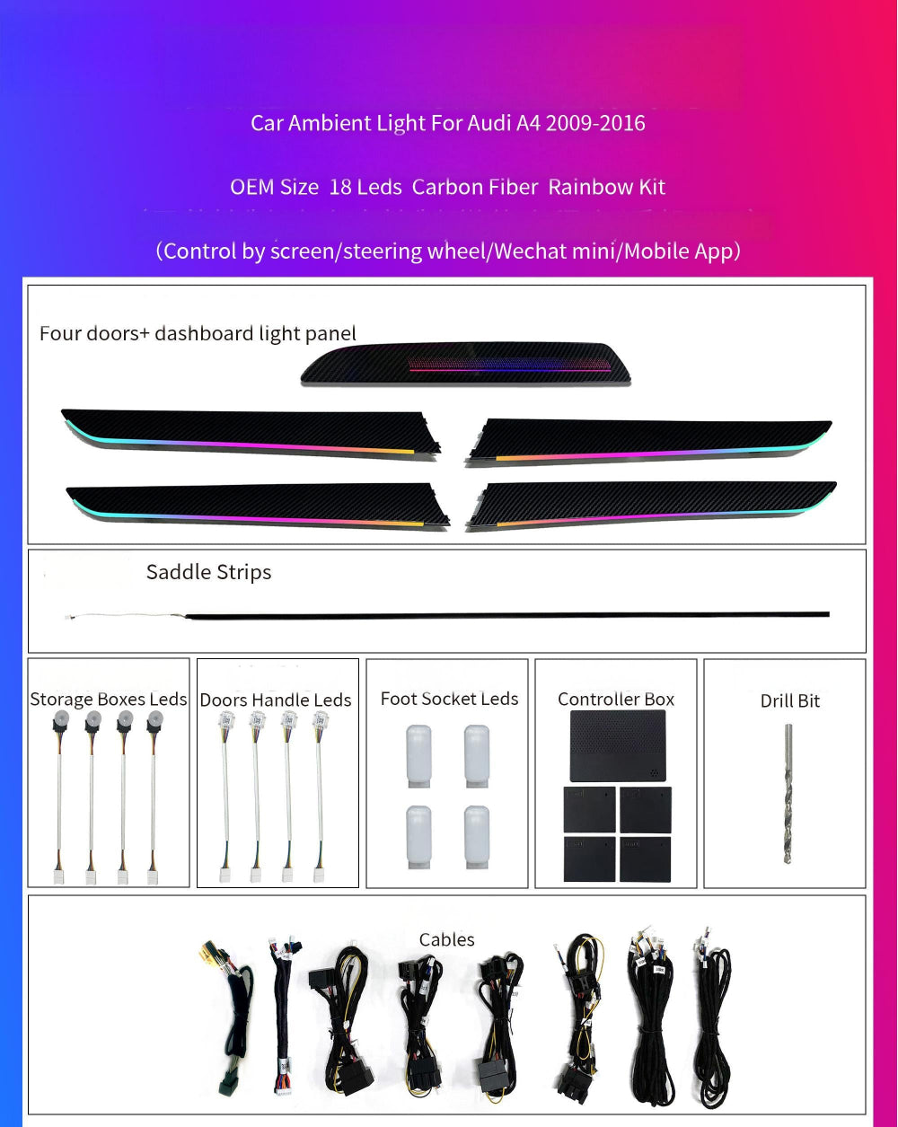 6. The ambient light kit with Original vehicle agreement, Support Car Screen Control