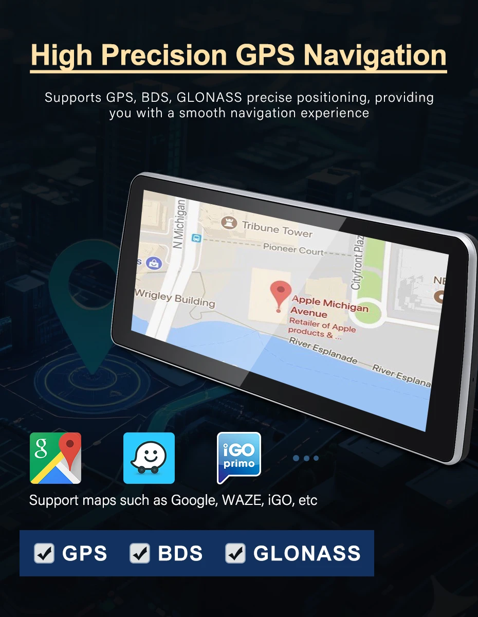 Built-in GPS with Google Maps, Waze, and more