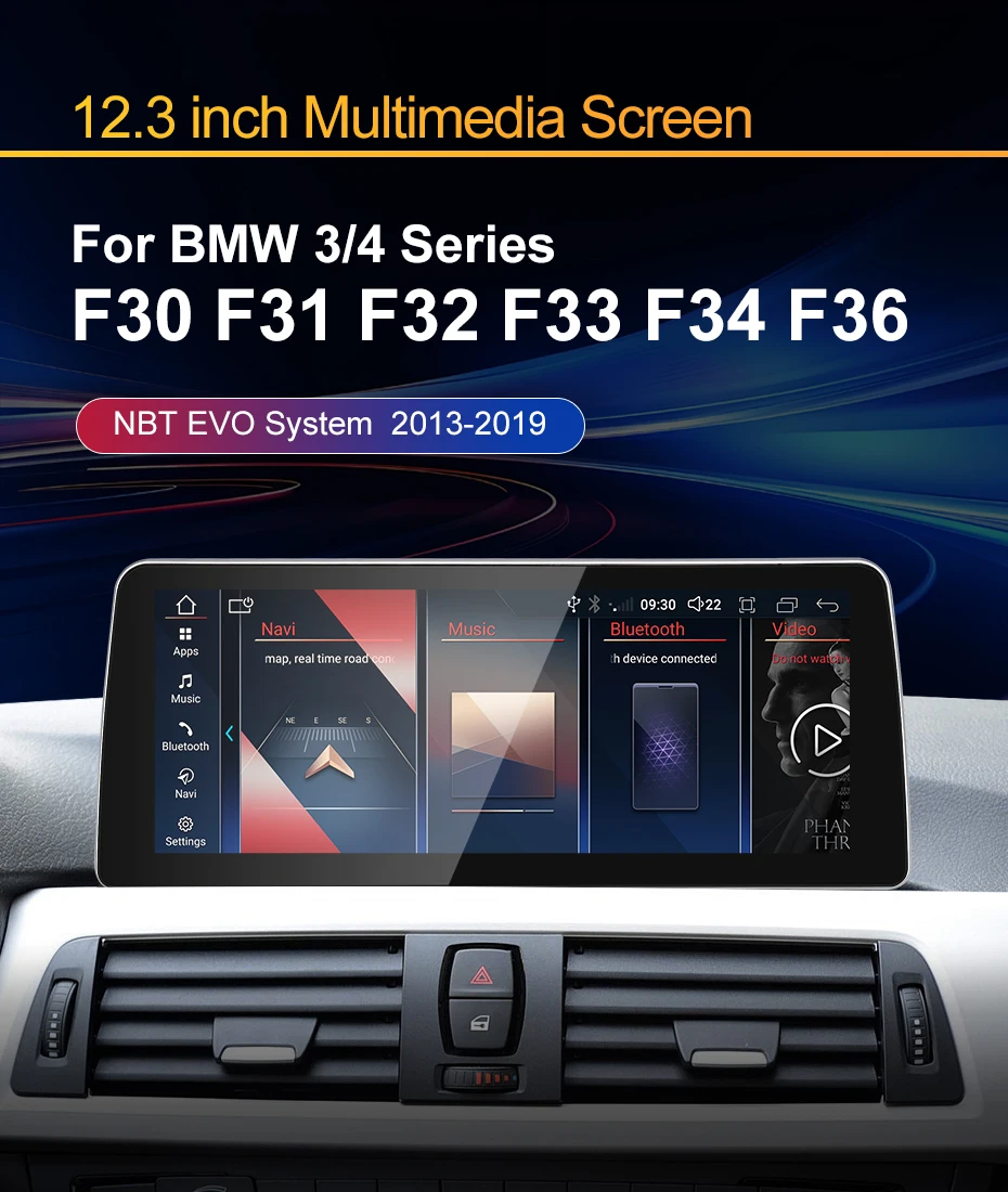 Upgrade your BMW 3 Series, 4 Series, M3, or M4 (F30/F31/F32/F33, 2012–2018) with a 12.3-inch Android 14 multimedia touchscreen. Designed to support both NBT (2012–2016) and NBT EVO (2016–2018) systems, this screen blends seamlessly with your OEM setup while adding advanced smart features.