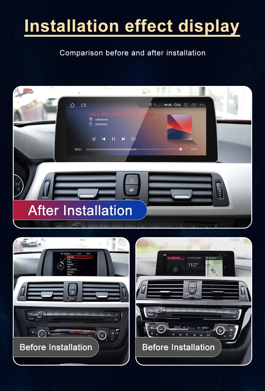Enjoy wireless CarPlay and Android Auto, as well as direct access to YouTube, navigation apps (Google Maps, Waze), music streaming, and more. The system works perfectly with your iDrive controller, steering wheel buttons, and original sound system.
