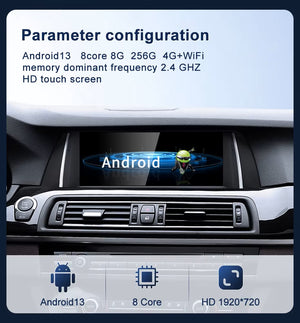 Upgrade your BMW 5 Series F10 F11 2009-2017 with the 10.25-inch Android 14 multimedia head unit featuring Qualcomm Snapdragon performance. Enjoy wireless Apple CarPlay, Android Auto, smooth navigation, and seamless integration with your car’s system.