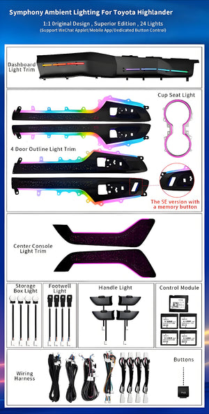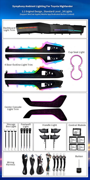 Upgrade Led Car Interior Ambient Lighting for Toyota Highlander / Kluger 2021-2024 Trim Decoration Accessories